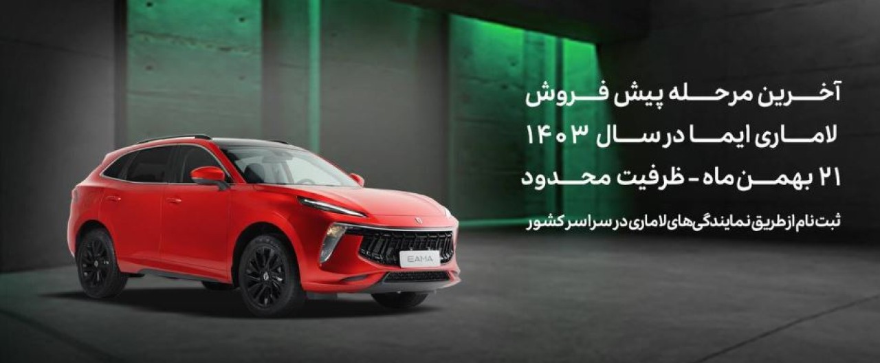 شرکت آرین پارس موتور بخشنامه جدید پیشفروش عادی و طرح جوانی جمعیت لاماری ایما با ظرفیت محدود را برای آخرین مرحله فروش این محصول در سال 1403 منتشر کرد. بر اساس این طرح، پیش فروش خودرو با مدل 1404 از ساعت 12 ظهر روز یکشنبه 21 بهمن ماه تا زمان تکمیل ظرفیت انجام خواهد شد.